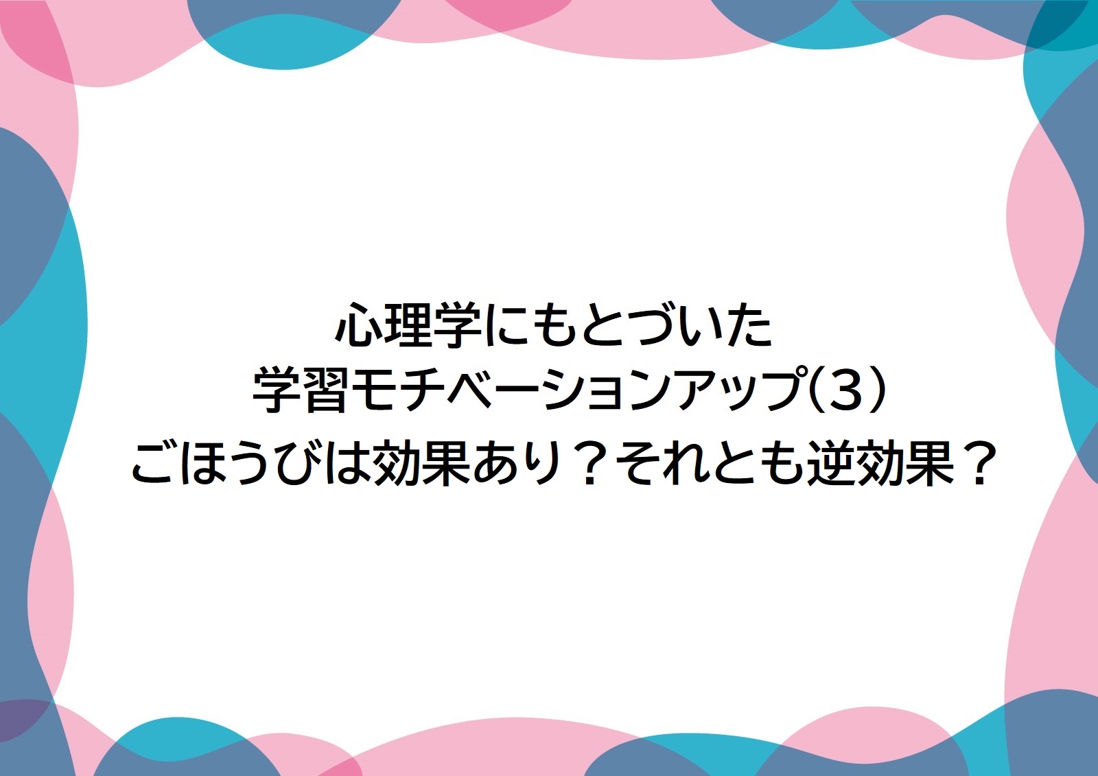 学習の「やる気」をアップ・維持させるために、ごほうびを設定する方も多いと思います。それでは、ごほうびには本当に「やる気」を高める効果があるのでしょうか。今回は動機づけの理論から、学習の促進にごほうびが有効かどうかを検討していきます。